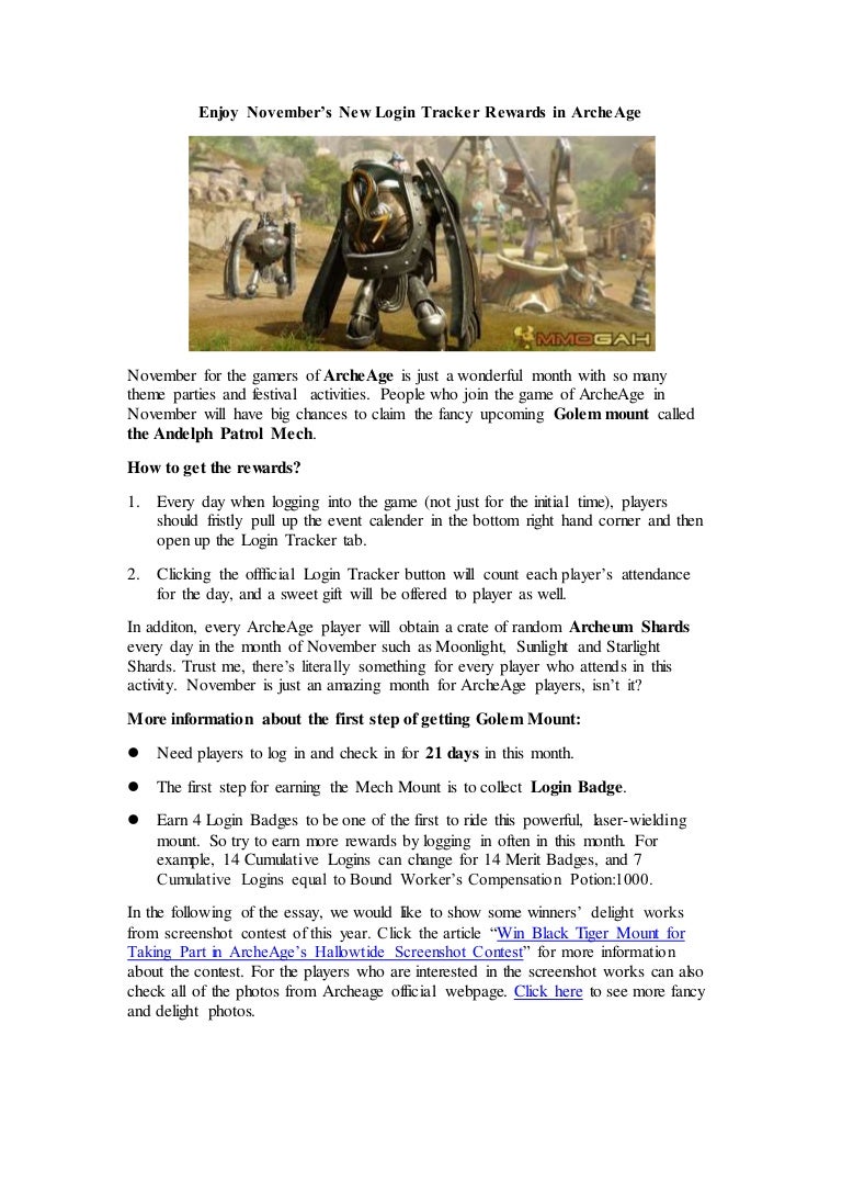 Enjoy Novembers New Login Tracker Rewards In Archeage